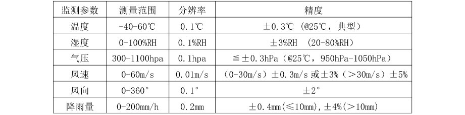 测量原理:风速风向(超声波),雨量(翻斗)