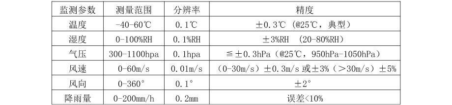 测量原理:风速风向(超声波),雨量(光学)